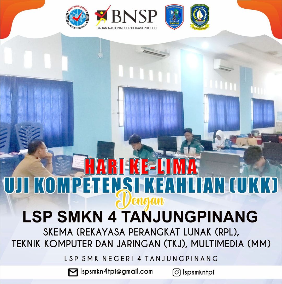 Selasa, 07 Maret 2023Hari Kelima Siswa SMKN4 Tanjungpinang kelas XII Jurusan Rekayasa Perangkat Lunak, Teknik Komputer dan Jaringan dan Multimedia, mengikuti Uji