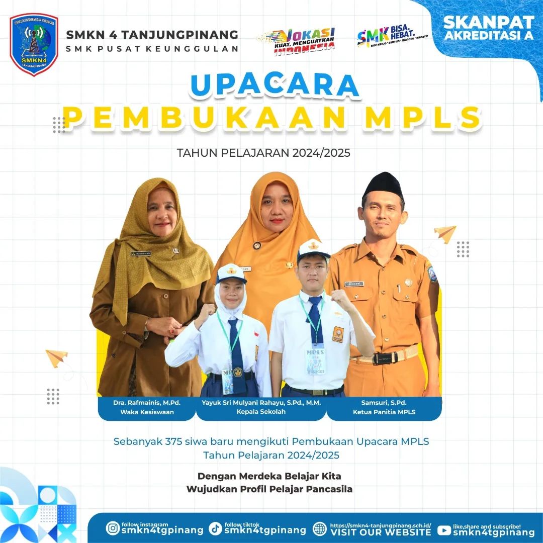 SMKN 4 TPI – Pada hari Senin, 15 Juli 2024, SMKN 4 Tanjungpinang menyelenggarakan Upacara Pembukaan Masa Pengenalan Lingkungan Sekolah (MPLS) bagi