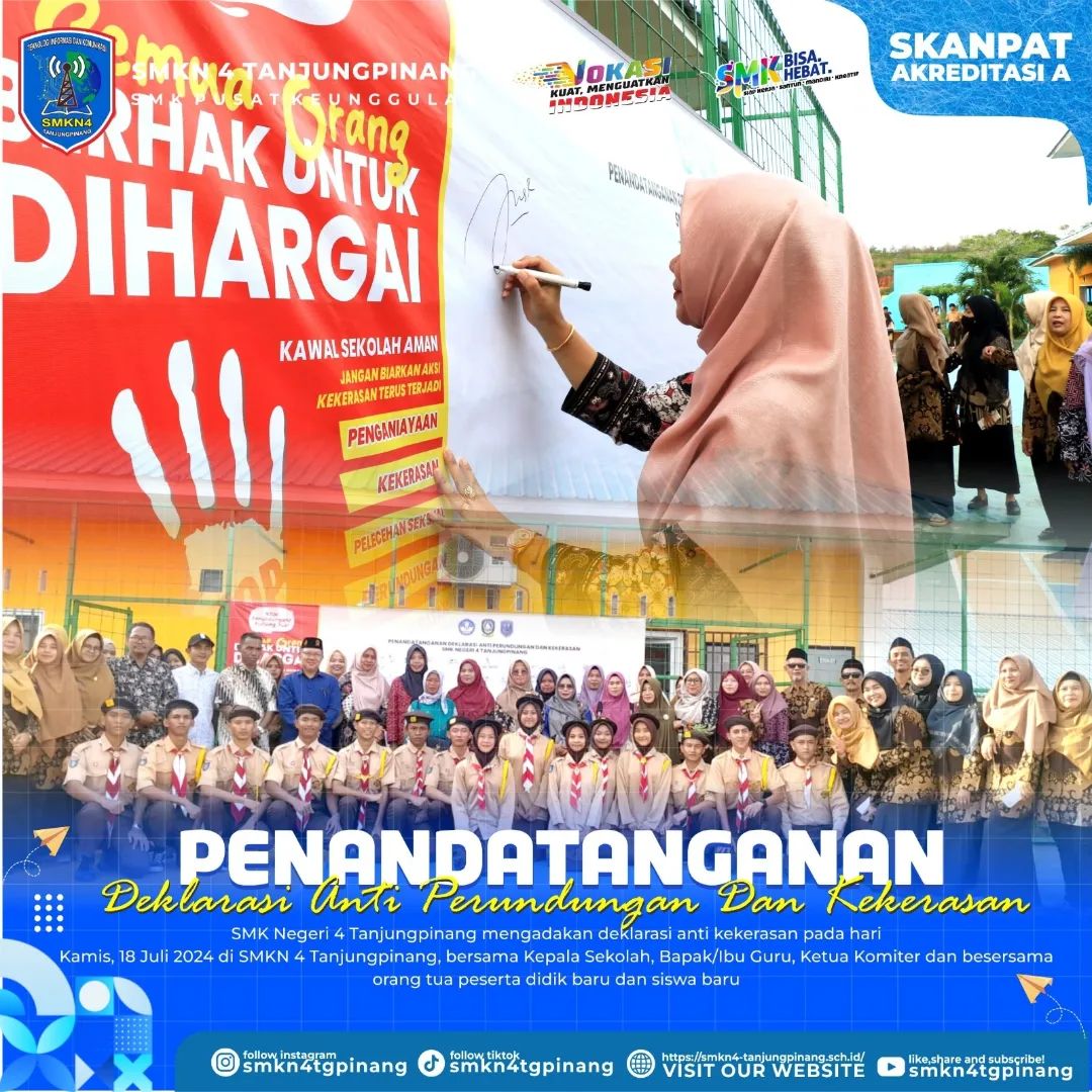 SMKN 4 TPI – Pada hari Kamis, 18 Juli 2024, SMK Negeri 4 Tanjungpinang mengadakan acara Deklarasi Anti Kekerasan. Acara ini dilaksanakan
